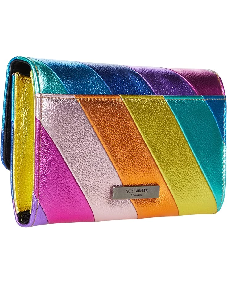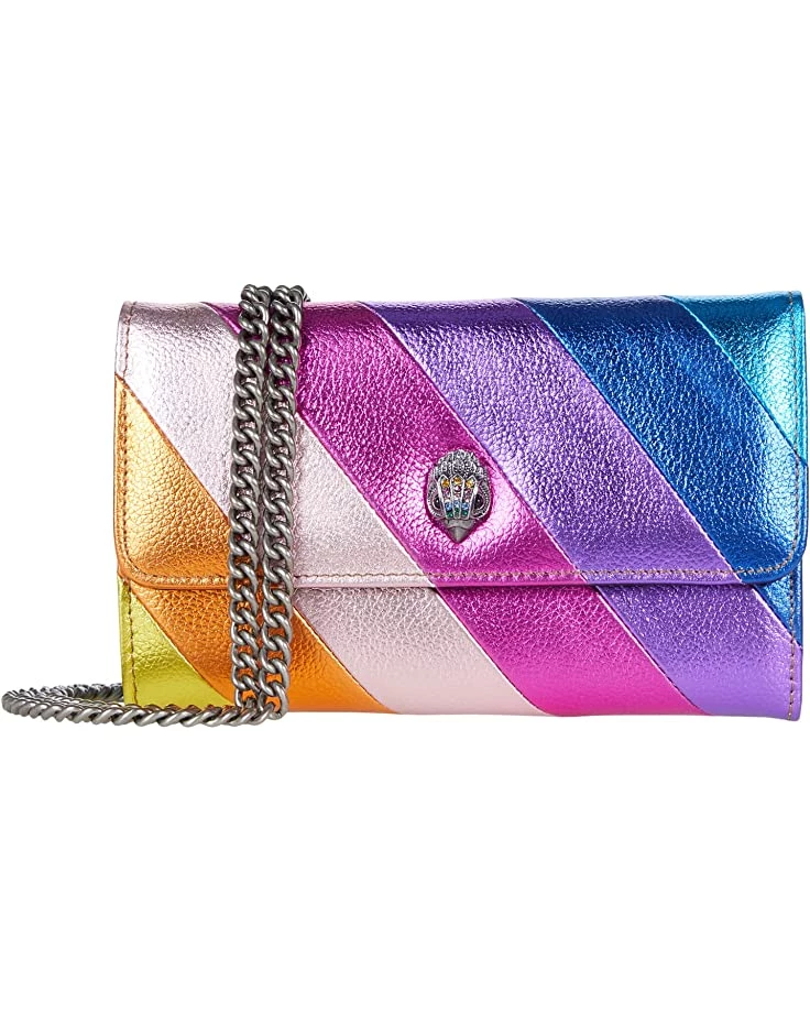 - Delivered with a vibrant multicolored outer in the iconic Kurt Geiger™ rainbow stripes, the Kensington Stripe Chain Wallet is the perfect 100% leather addition to any outfit.