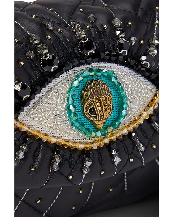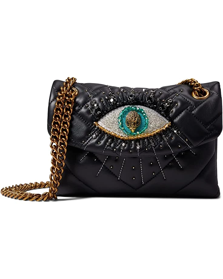 - The Kurt Geiger London™ Leather Mini Kensington Eye bag encapsulates understated elegance with the eye motif detail on the front. The gold strap can sit across the body or doubled up to sit on the shoulder whilst the magnetic closure opens to a lined interior with singular pocket.