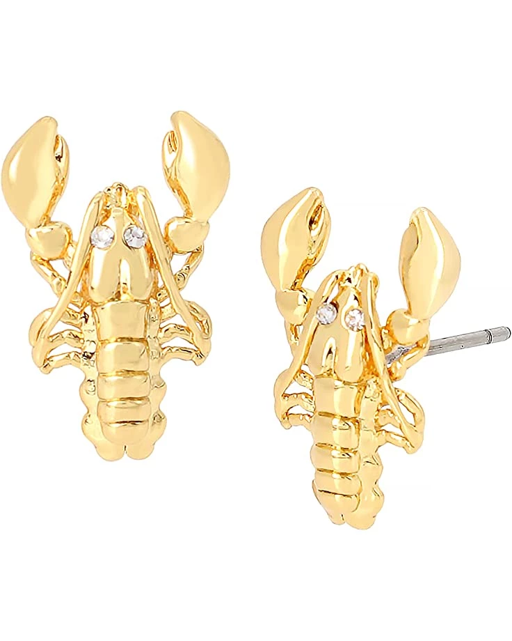 - Playful stud earrings featuring signature lobster adorned with minimal stone accents.