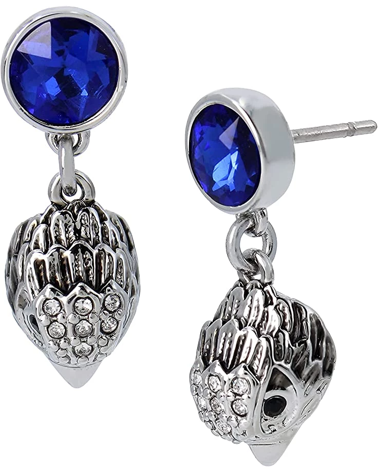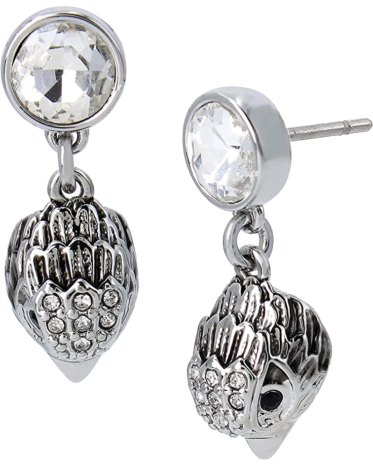 - Glistening crystal stone stud adorned with dangling signature eagle head motif charm.