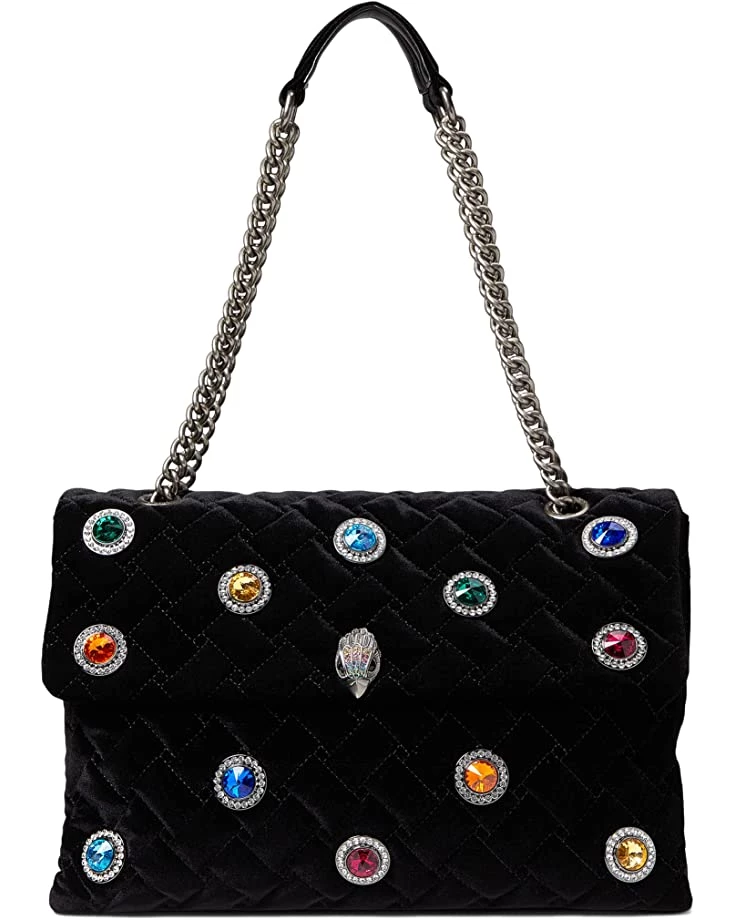 - An allover rhinestone detailing adorns the look of the Kurt Geiger London™ Velvet XXL Kensington Handbag.