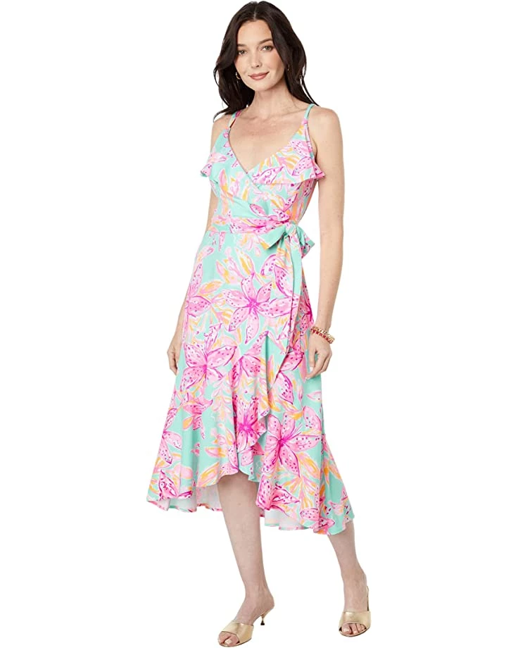 - Look fresh and beautiful wearing the Lilly Pulitzer® Fontaine Knee Length Wrap Dress.