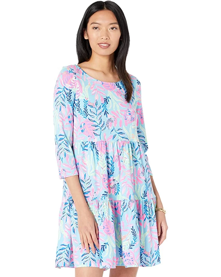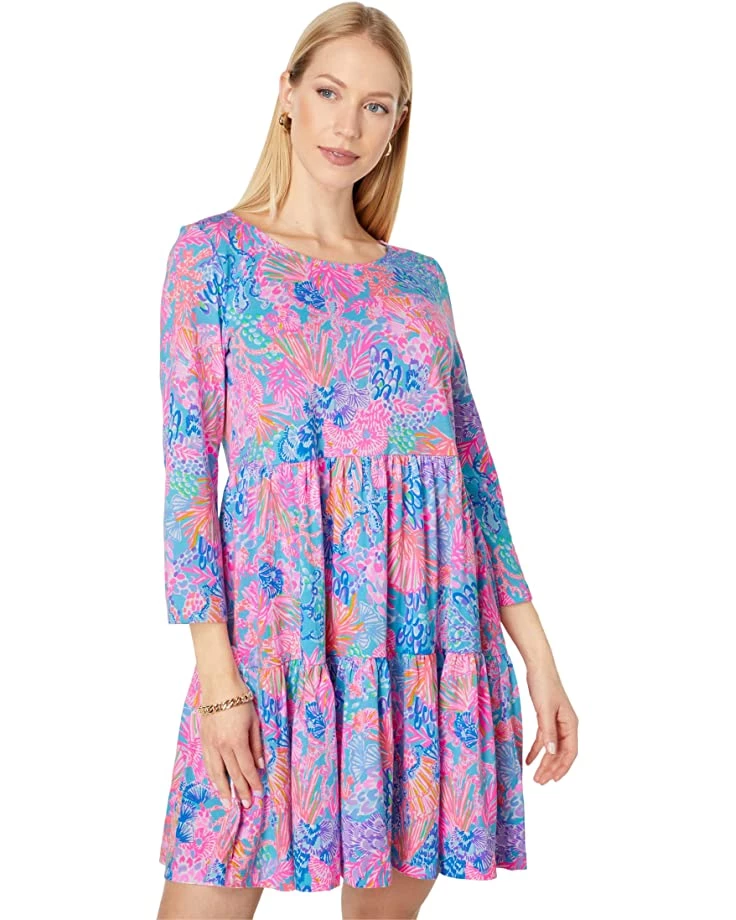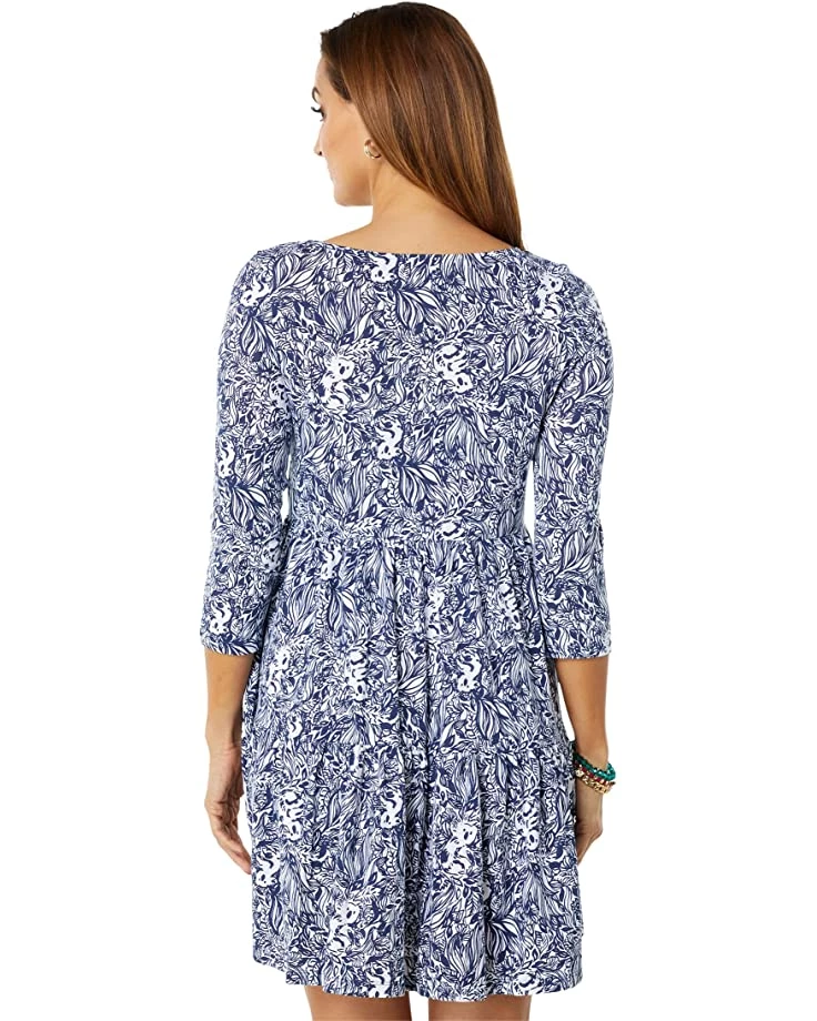 - Start your spring off right in the Lilly Pulitzer® Geanna Dress featuring a classic three quarter sleeve dress boasting pleated detailing at waist for added shape, boasting all over floral print.