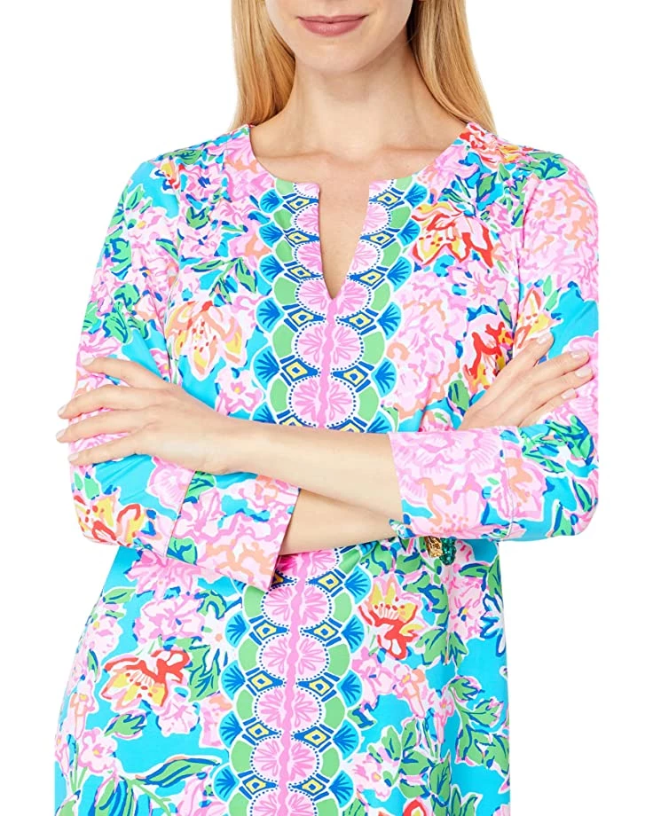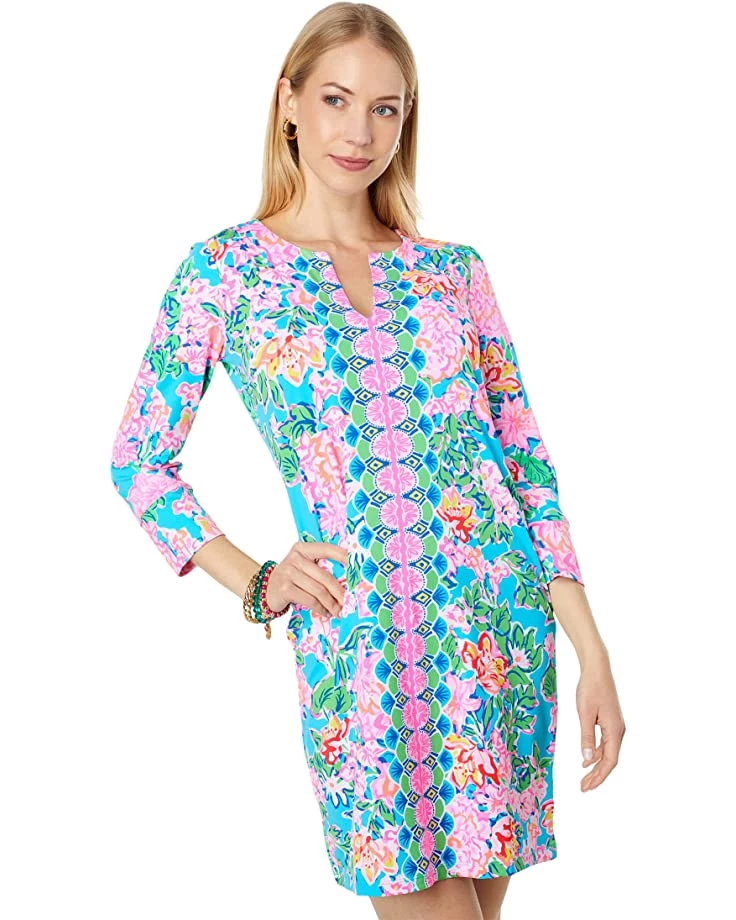 - Look chic and stay comfy on warm days wearing the Lilly Pulitzer® UPF 50+ Nadine Dress that offers sun protection and will be your go-to wear when stepping out.