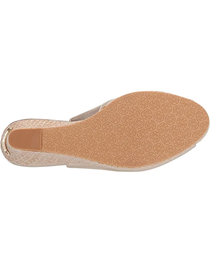 - Platform wedge slingback features a gold metallic leather upper and insole.