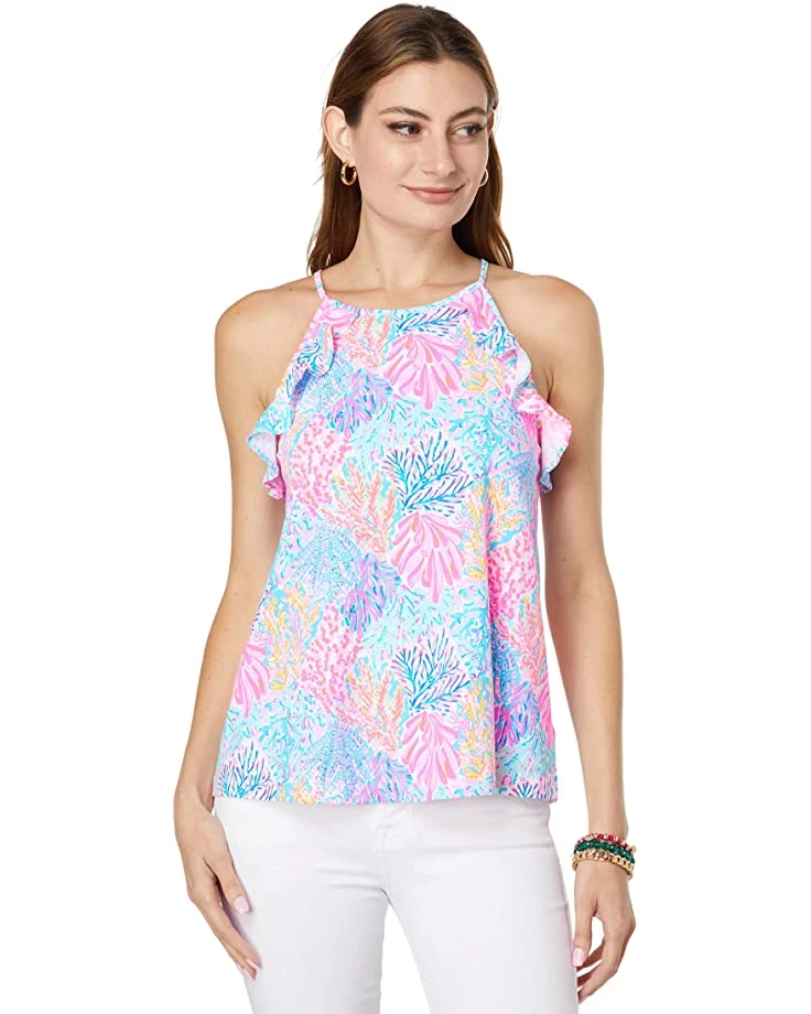- The Lilly Pulitzer® Billie Top takes the tank design and adds a swing fit and chic designer details. Skinny straps top the style, while flounced armhole details and a back keyhole give it that special flare.
