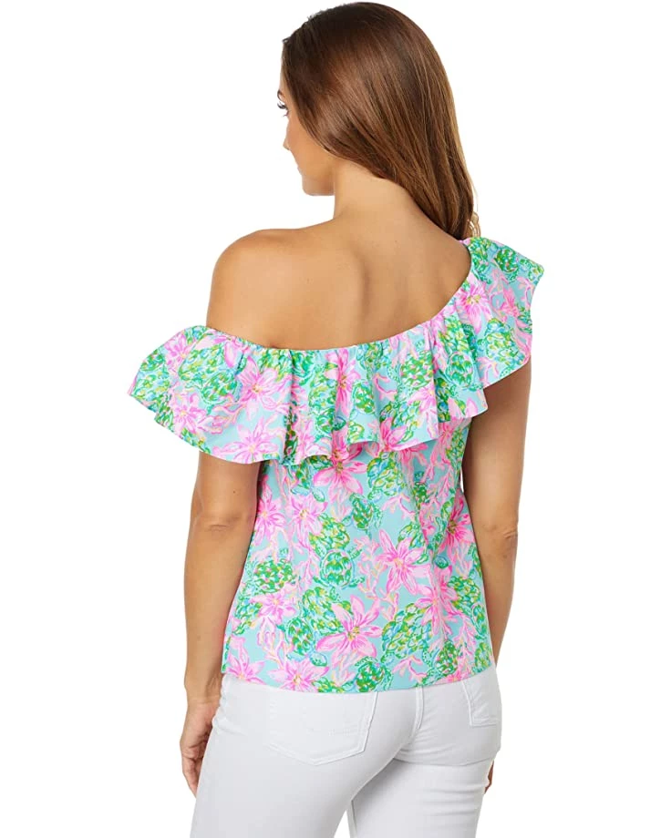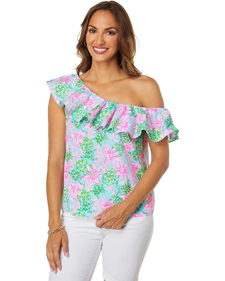 - Add a dash of charm to your sweet and elegant style wearing the Lilly Pulitzer® Zeldie One Shoulder Ruffle Top.