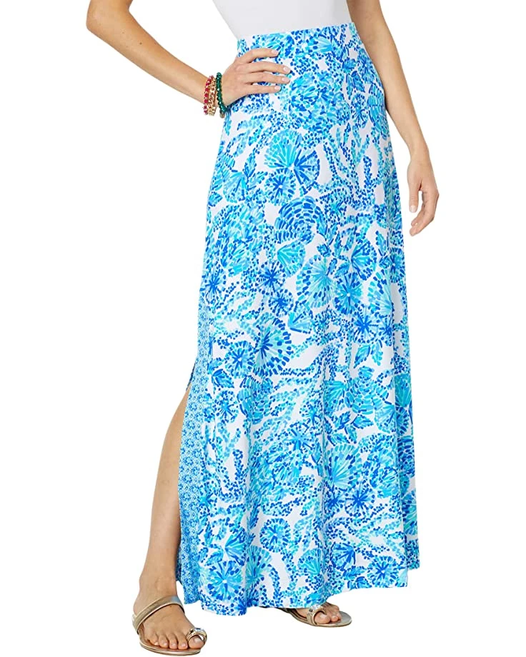 - The Lilly Pulitzer® Adea Skirt was Mermaid for You! This floor-length beauty features an allover underwater-inspired print and slits that begin at the knees, bordered by a complementary pattern.